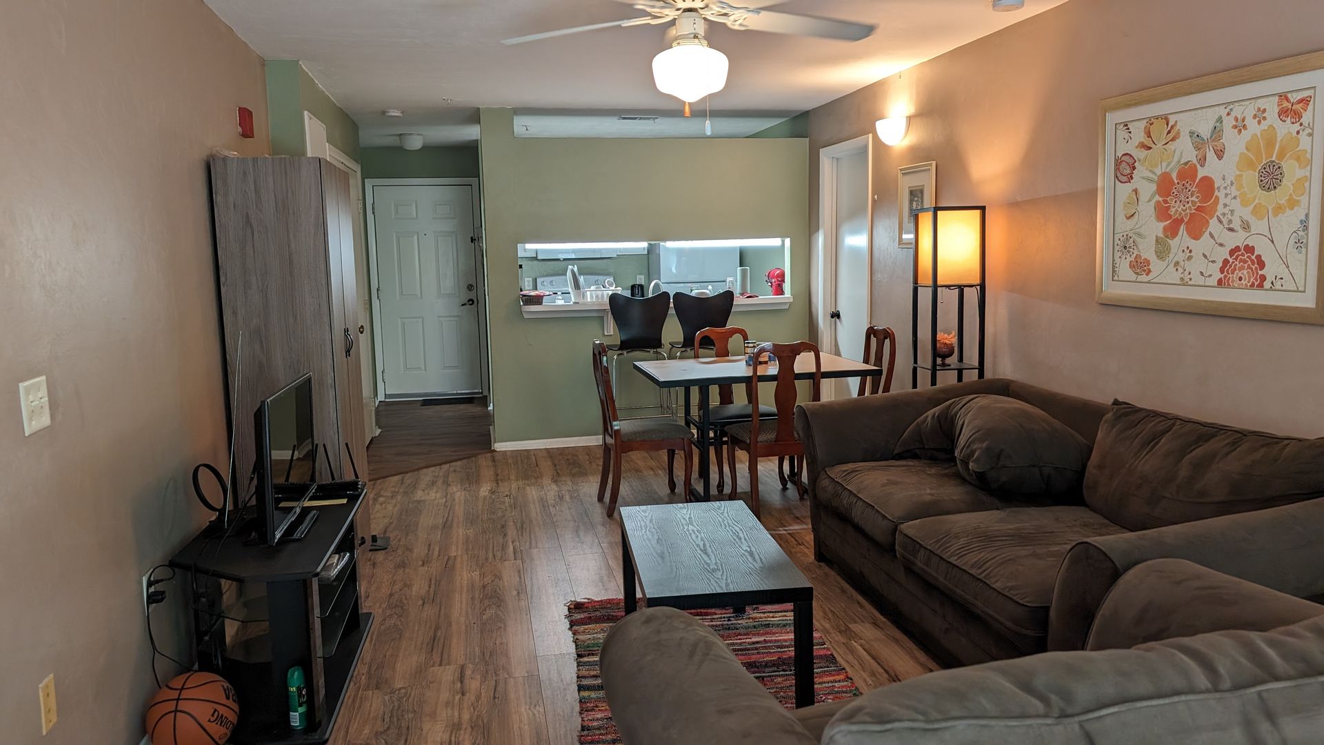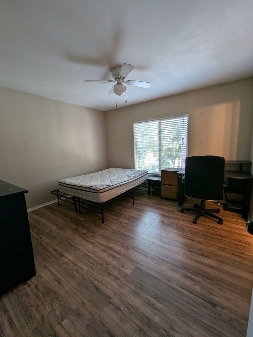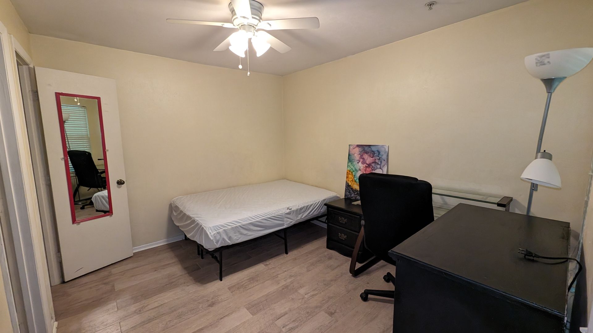 This rental includes a private bedroom, bathroom and walk in closet in a shared housing unit. Each bedroom contains a full size bed, desk and chair. The unit is equipped with all kitchen appliances, including washer/dryer and the living room is fully furnished. Rental fees include a $50 allowance toward utilities. Utility expenses that exceed allowance will be billed equally among all tenants. Contemporary vinyl plank flooring throughout unit for easy care. The covered balcony has a great view of the basketball courts and the gym which are just some of the amenities at this community. The community has plenty of open parking and covered city bus stops are just outside with direct routes to multiple UF Campus locations hospitals.