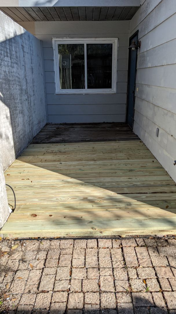 Enter the gate of the decorative wooden fence at the front of this unit to access your own little courtyard. Sunbathe or enjoy your morning coffee in private on the wooden deck and green space where you can choose to maintain the current natural vegetation or make your own additions.