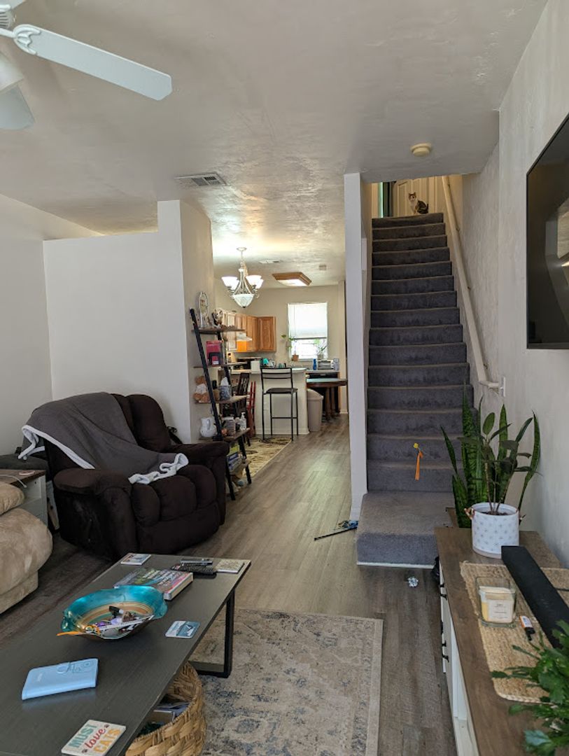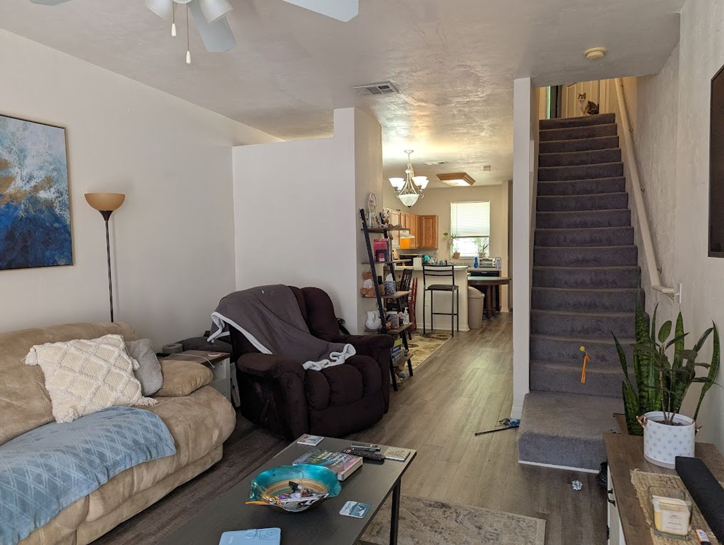 2-bed, 2.5-bath townhome-style condo in the sought-after Kensington South community. Step through the front door to a light-filled main level, where the spacious living room flows seamlessly into the dining and kitchen area. To your left, a convenient half bath is tucked beneath the staircase, and to your right you’ll find a generous storage closet. A laundry closet is conveniently placed near the back door. Head upstairs and you’ll discover two bedrooms on each end of the home, both featuring its own ensuite bathroom with a shower/tub combo. Residents enjoy access to a welcoming community pool, clubhouse, and high speed internet making life simple and stress-free. Bonus: enjoy the peace of mind that comes from having no one living above or below you. Located just minutes from UF, UF Health-Shands, VA Hospital, Butler Plaza, and Celebration Pointe, this home is a commuter's dream. Hop on one of the nearby UF bus routes or bike to campus with ease.