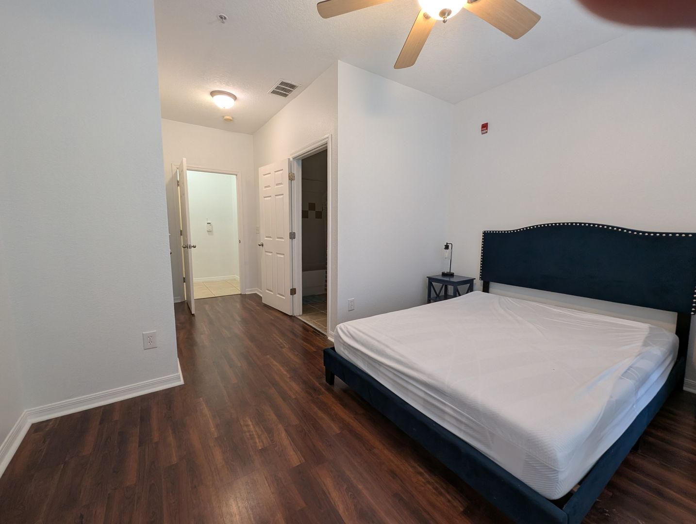 The rental fee includes a private bedroom with full bathroom. The bedroom is furnished with a bed and nightstand with plenty of space for your personal decor.
