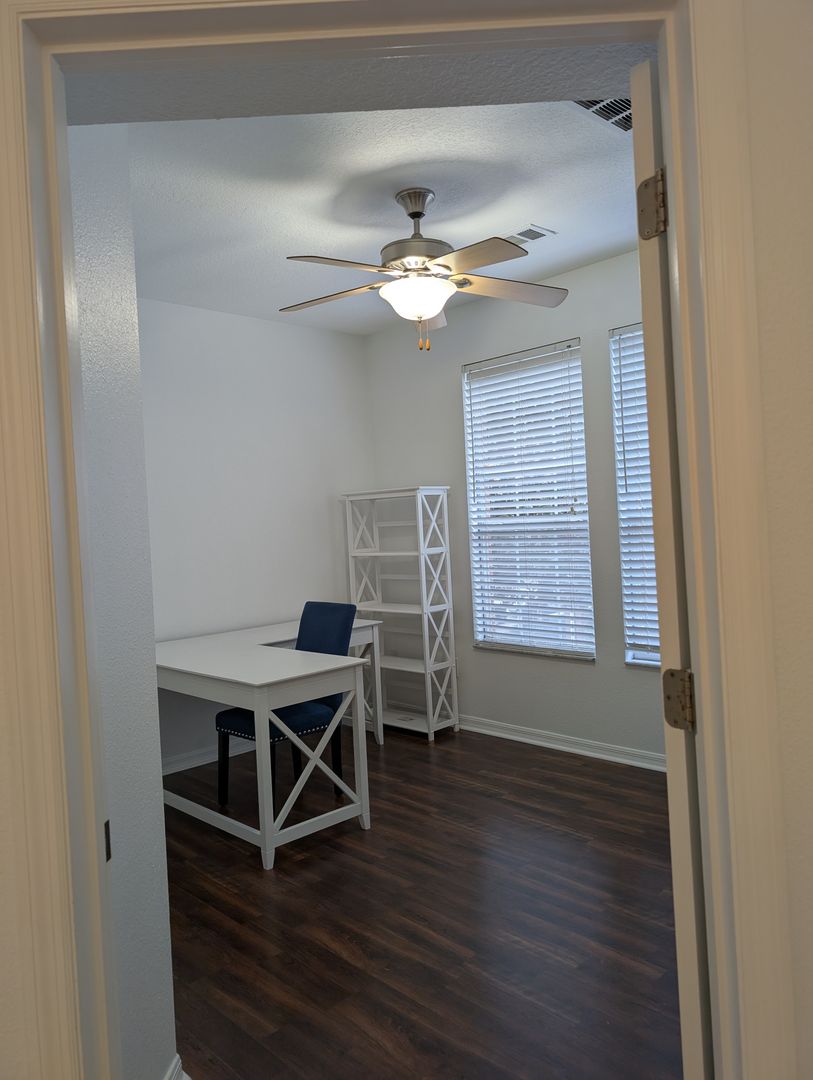 The common areas are shared with one other tenant. The large kitchen is outfitted with all appliances the laundry room has a washer/dryer for your use. The kitchen faces the large open living/dining area. The large windows and high ceilings open this space up for a much larger feel. Adjacent to the dining room is the third bedroom that serves an office/workspace which is available for your use. Finally, regardless of rain or shine, you can step out of the living room onto the large, covered patio for a breath of fresh air.