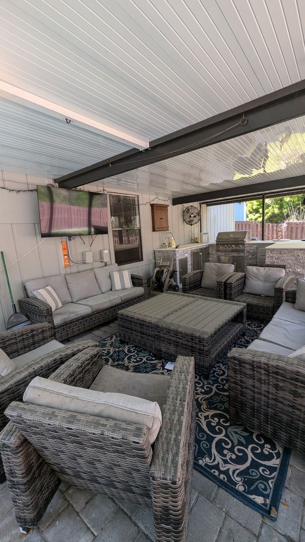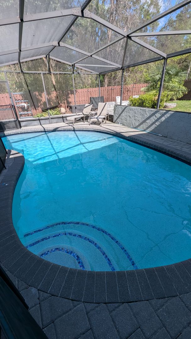 Whether you have an active family or just like to entertain a lot, this 4Bed/2Bath single family pool home offers great living spaces both inside and out. Step inside to beautiful new wooden patterned flooring that runs throughout the entire house. The large entry level is bright with lots of natural light from the large front windows. To the left on this level is the large master bedroom with ensuite bathroom and whirlpool tub. To the right of the entrance you will find a large kitchen complete with a central island providing more counter and storage space. A breakfast nook surrounded by windows provides a lovely view for breakfast. For dinner you can take advantage of the pass through counter to the adjacent formal dinning room. Several steps down from the entrance level you will find a large room with high ceilings and a stone fireplace that is ideal for a family room, media area etc. Three more bedrooms share another bathroom with tub/shower on this level. French doors from the family room lead to a entertainment area with wet bar where sliding glass doors lead to the pool. The screened patio includes a full exterior entertainment area with another bar, refrigeration, BBQ grill, TV and plenty of comfy seating. Take a few steps outside the patio and enjoy the rocking chairs around the fire pit when it is too cold for the pool.