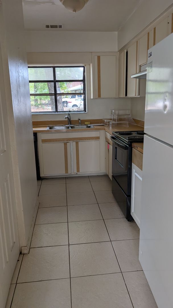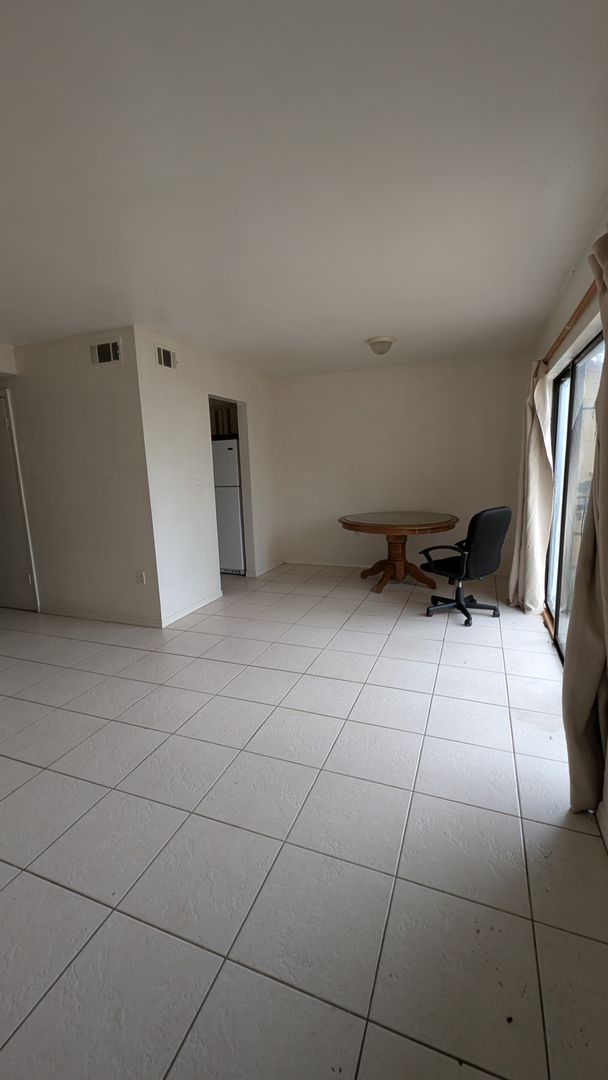 2 story townhouse with living room, kitchen and half bath downstairs. Upstairs two bedrooms share a full bath with tub/shower. Large windows and sliding glass doors provide lots of natural light throughout the unit.