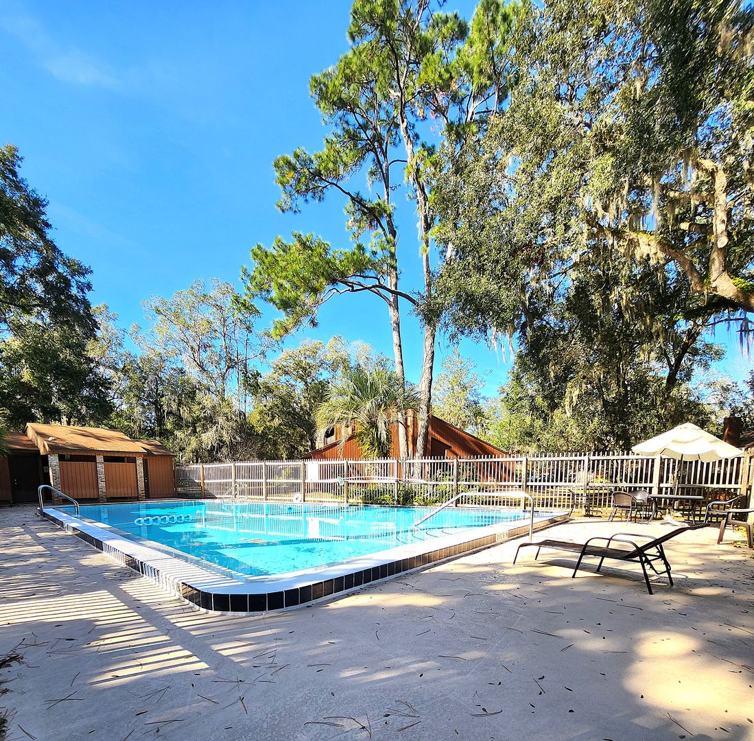 Great 3BR/2BA detached home in NW Gainesville. Located in Cedar Creek neighborhood, on a cul-de-sac, with 1 car garage and screened porch. No yard work required!! Easy living! Living room has beautiful fireplace and tall ceilings, Kitchen with pantry, breakfast bar and dining area, Primary bedroom is large with a walk in closet and private bath - also has tall ceilings for a spacious feeling. No carpeting, and pet friendly on a case-by-case basis, and a community pool!! Monthly pest control included in rent. Call today so you don't miss out on this great home!