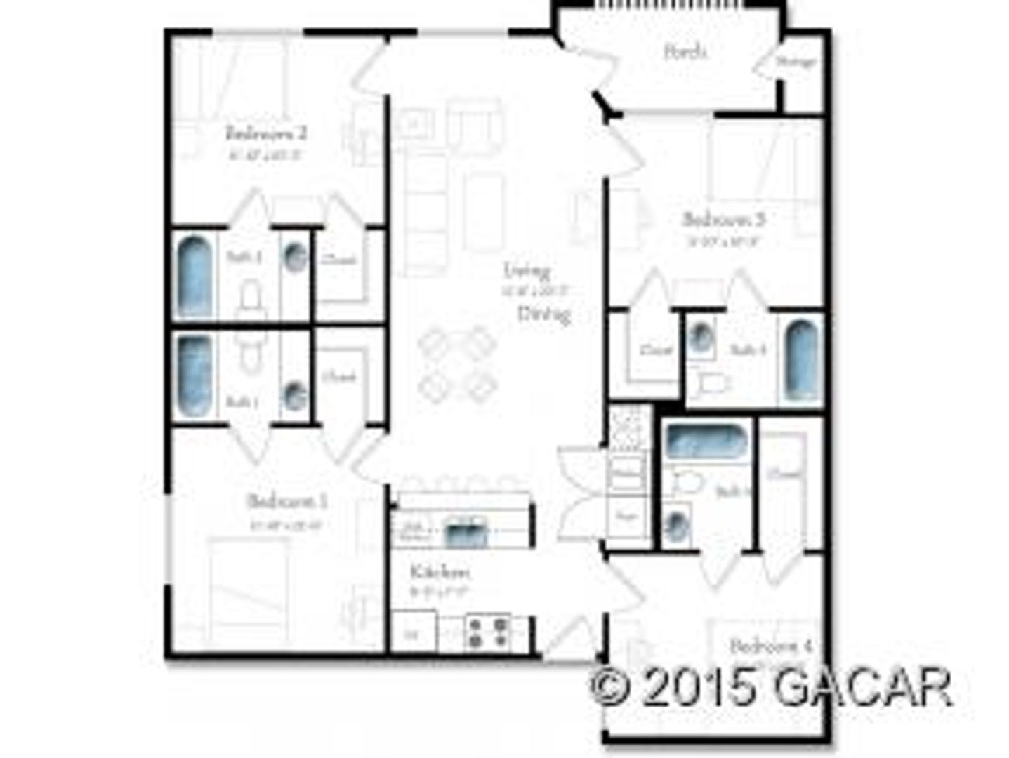 Rental is by the bedroom in this 4 bedroom, 4 bathroom Countryside at the University ground level unit located less than a mile from the University of Florida. The unit entrance is next to the kitchen and breakfast bar which opens to a living room and dining room, plus a covered back porch. Each corner of the unit has a bedroom with a private bathroom and walk-in closet. No carpeting- contemporary vinyl flooring throughout! Property amenities include high speed internet, community pool and hot tub, fitness room, basketball court and sand volleyball court. This condo is located on the bus route(s) to UF, Shands Hospital, VA Hospital, Butler Plaza shopping, Celebration Pointe and more.